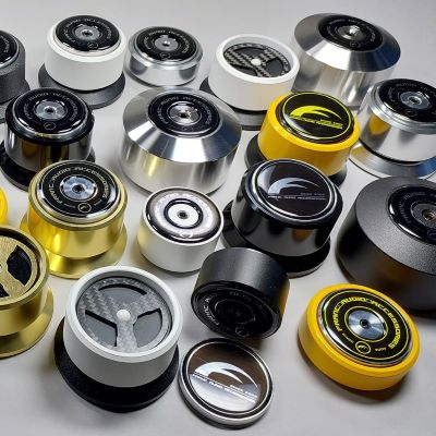 Sound Isolation Solutions for your speakers, aplifiers, turnatbles and your racks. Stainless Steel, Matte Black, Metalic Gold, or any custom color of your choice. Available in 4 size/ weight management options.