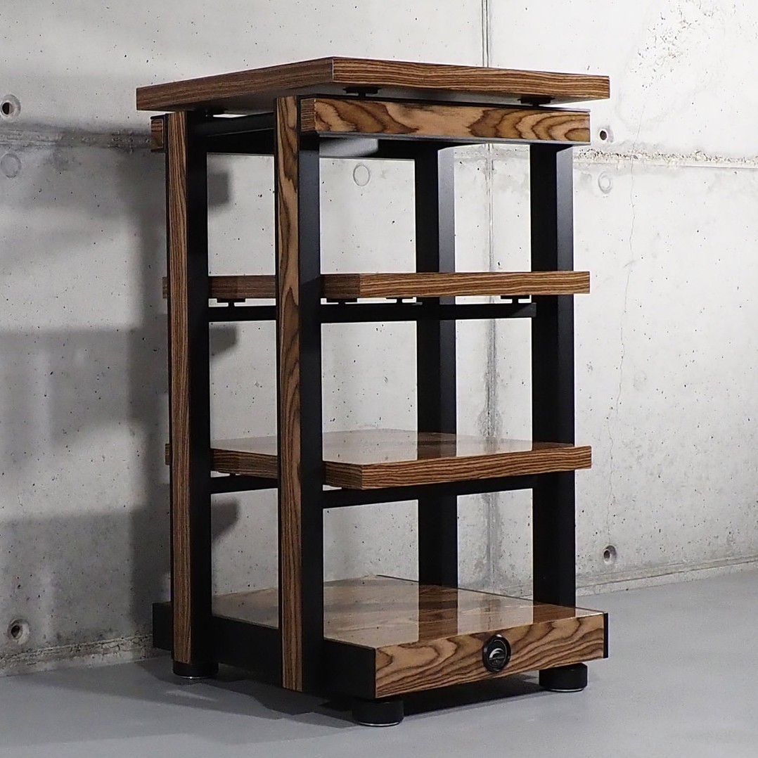 Franc Audio Wood Block 1+4 Rack. Two-high by two-wide. On display in an Italian matte walnut veneer finish. Customize your rack build starting at $-TBD.