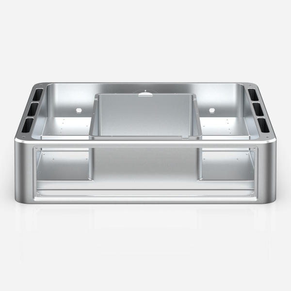 Each Brama chassis begins as a single solid block of Aluminum 6063 and is precision-machined using a 5-axis CNC process. While nearly all other high-end audio manufacturers assemble their enclosures from multiple panels (top, bottom, sides, front, and rear), our monolithic approach offers significant performance advantages.